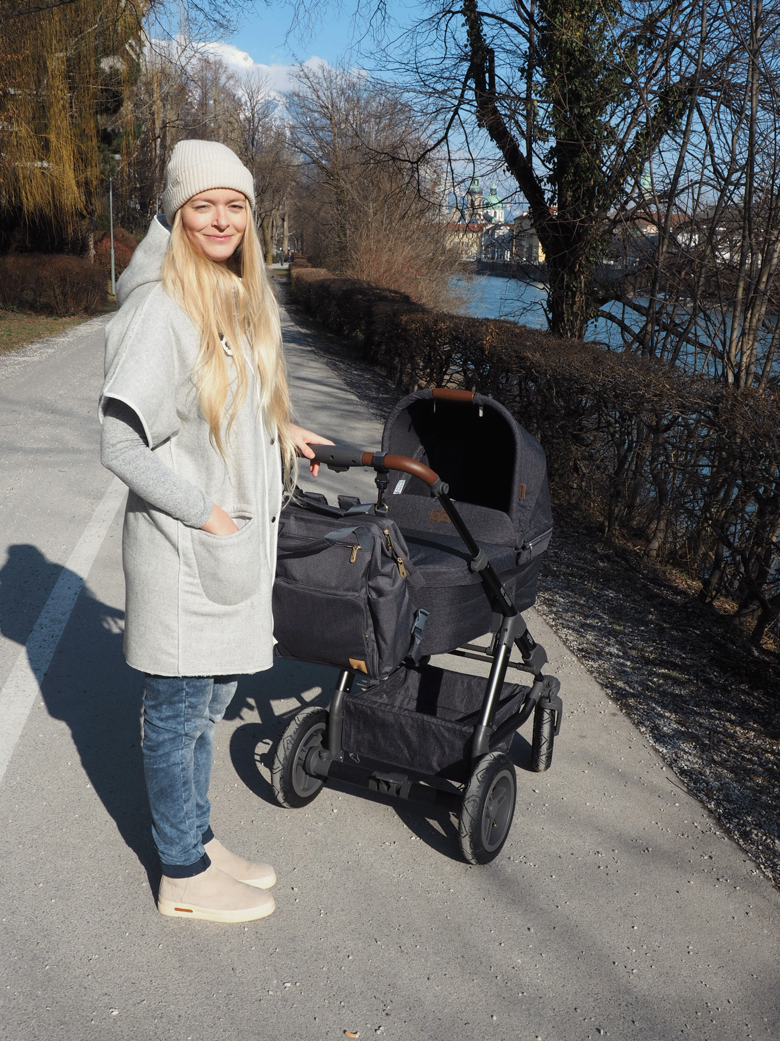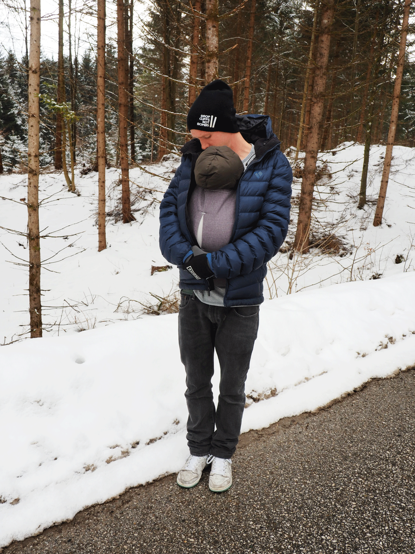 Wir sind nun zu dritt. Eigentlich sogar zu fünft, aber Hazel und Dixon müssen ja zu Hause bleiben, während wir unsere ersten Ausflüge genießen dürfen (fairerweise muss man aber auch sagen, wenn wir auf Arbeit gehen müssen, dürfen die Beiden zu Hause bleiben, damit sind wir quitt). Nach nicht einmal drei Wochen habe ich das Gefühl, als wäre es schon immer so gewesen. Der einzige Unterschied: Fertigmachen dauert nun doppelt so lange als vorher und nach ein paar mal Schere, Stein, Papier, Schnick, Schnack, Schnuck, Fli, Fla, Flu, Ching, Chang, Chong, Klick, Klack, Kluck, was auch immer, haben wir auch endlich ermittelt, wer den Kleinen tragen oder schieben darf.